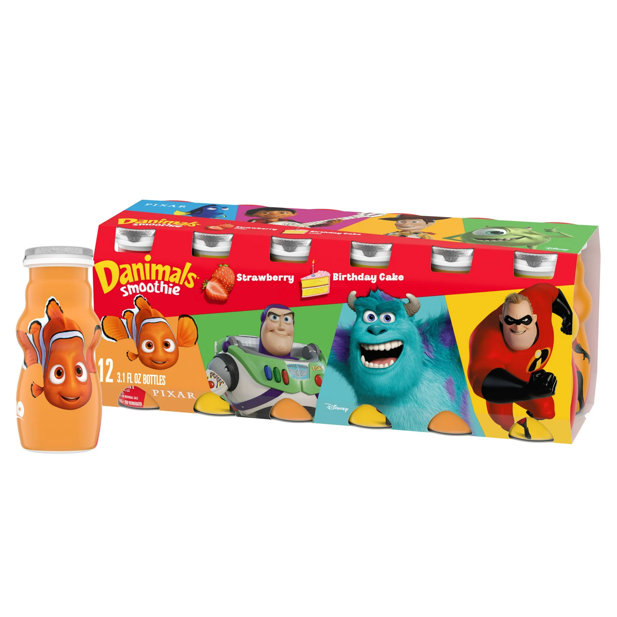 - Convenient Bottles: Twelve 3.1 oz bottles of Danimals Strawberry Explosion and Birthday Cake Smoothies perfect for on-the-go