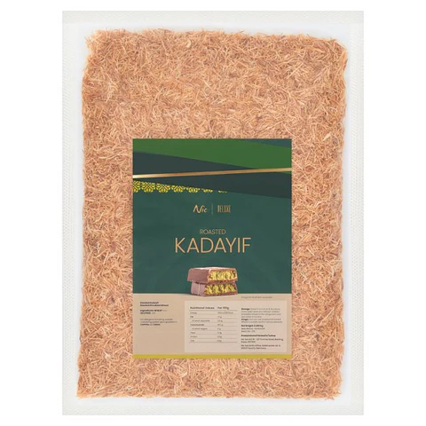 Roasted Kadayif is a traditional, finely shredded phyllo dough pastry that is toasted until it is golden and crisp. Used as a key ingredient in Middle Eastern and Mediterranean desserts like kunafa and baklava, it’s a versatile and convenient base for a variety of dishes, including modern viral treats like Dubai-style chocolate bars