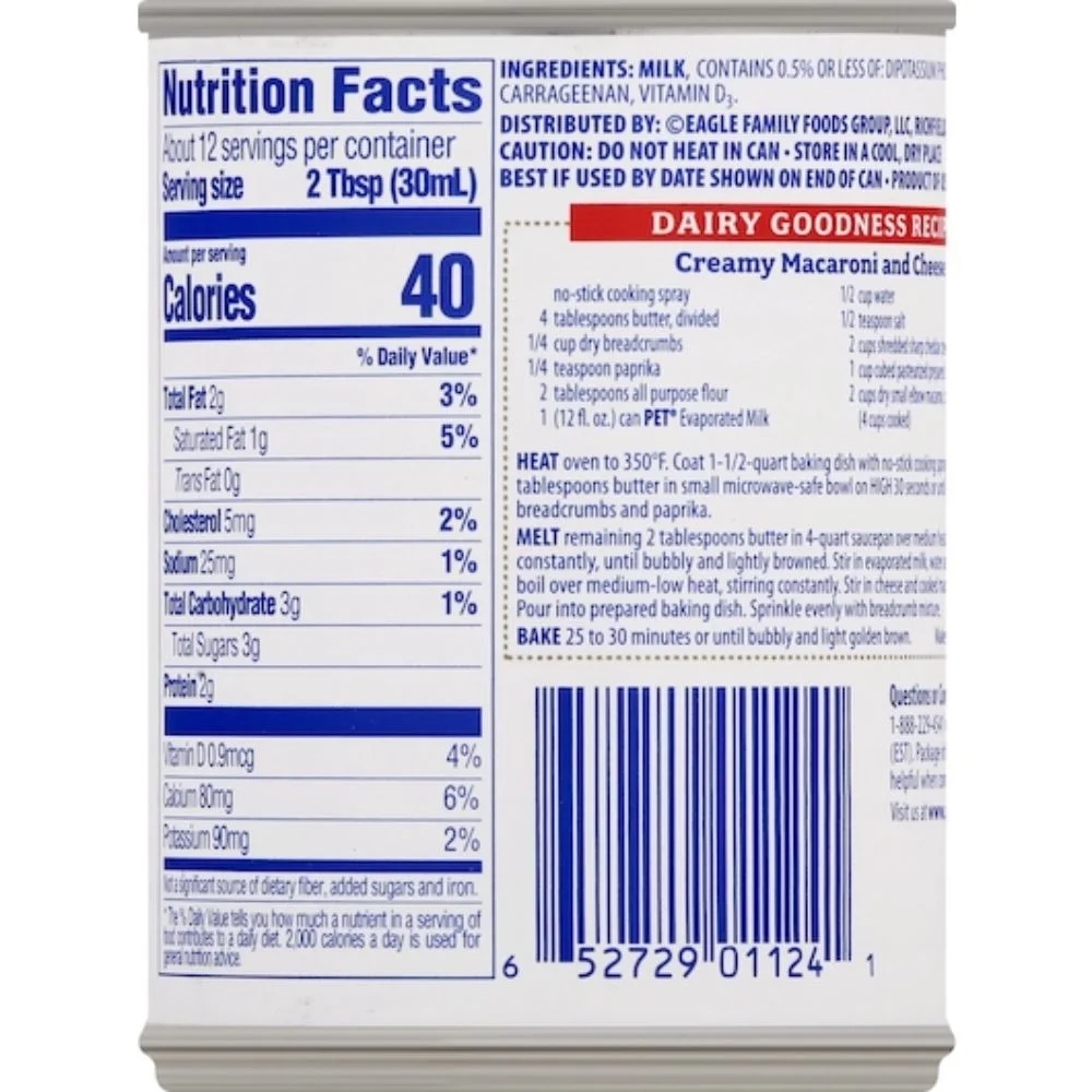 Pet Evaporated Milk 12 Fl oz has Vitamin D added and is made with real milk. This product won the 2007 Chef’s Best Taste Award. This canned evaporated milk is ideal to use in a rich and creamy pumpkin pie recipe for your holiday table. Pet: Evaporated Milk, 12 Fl Oz. Pet Evaporated Milk 12 Fl oz has Vitamin D added and is made with real milk. This product won the 2007 Chef’s Best Taste Award. This canned evaporated milk is ideal to use in a rich and creamy pumpkin pie recipe for your holiday table. Pet: Evaporated Milk, 12 Fl Oz. PET Evaporated Milk, 12 fl oz, contains added Vitamin D, which aids the absorption of essential minerals. It’s REAL Seal certified and also suitable for kosher diets. This canned milk is a handy cupboard staple and ideal for use in many recipes.