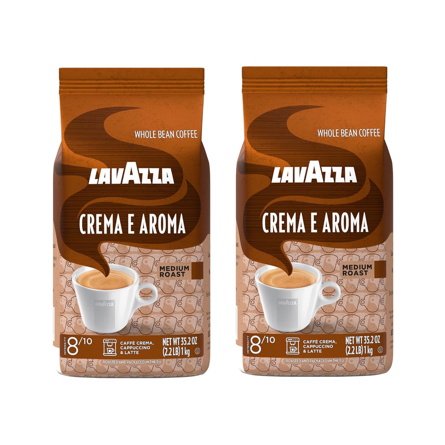 Lavazza Crema e Aroma Whole Bean Coffee, Medium Roast, Arabica and Robusta Blend, 2.2 lb Bag (Pack of 2)