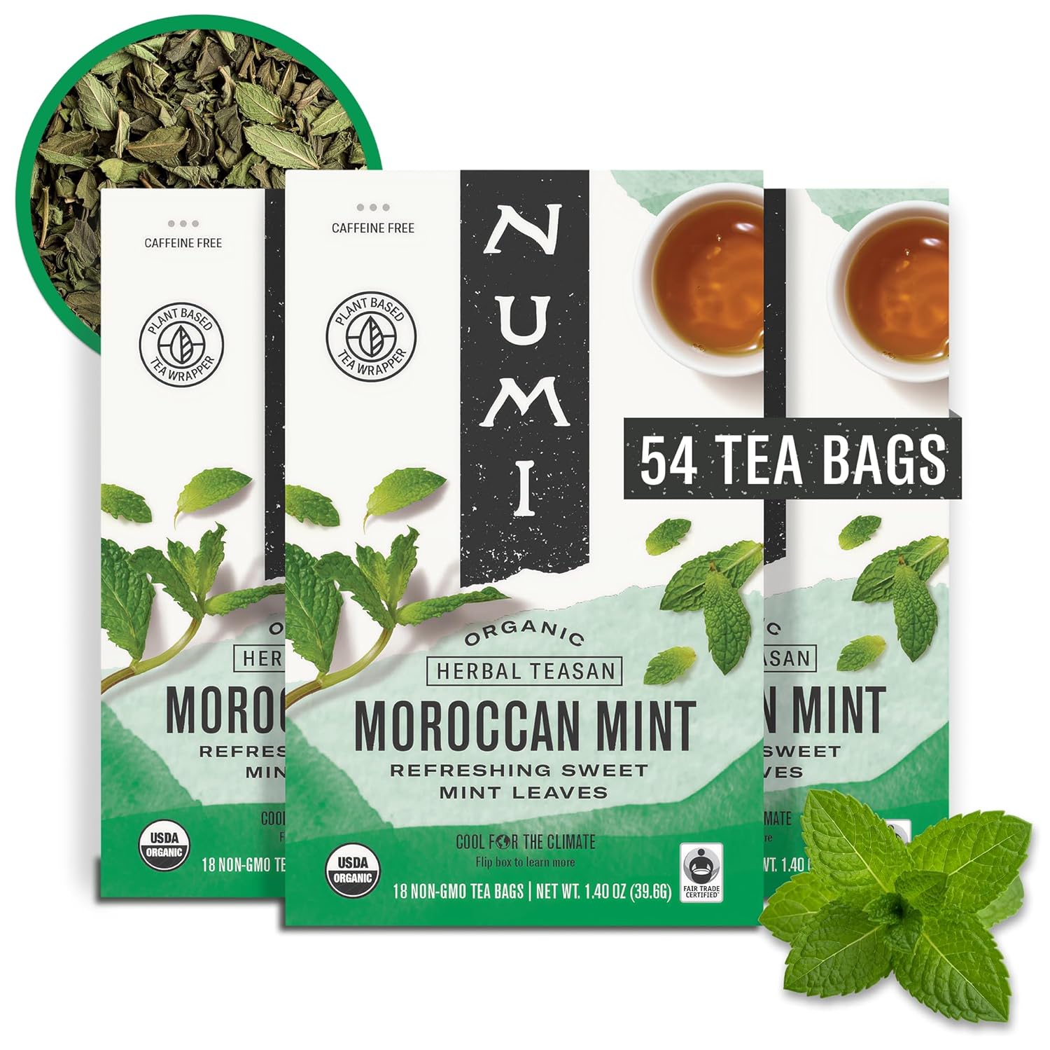 Numi Tea Organic Moroccan Mint Tea, 54 Herbal Tea Bags, Caffeine Free