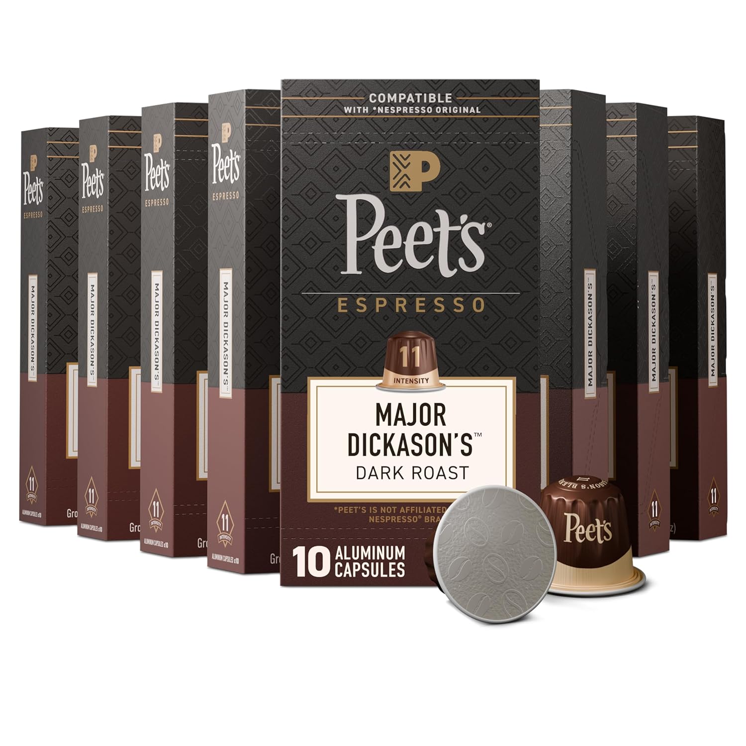 Peet’s Coffee, Dark Roast Espresso Capsules, Compatible with Nespresso Original Machines, 100% Arabica Coffee – Major Dickason’s Blend, Intensity 11, 100 Count (10 Boxes of 10 Espresso Capsules)