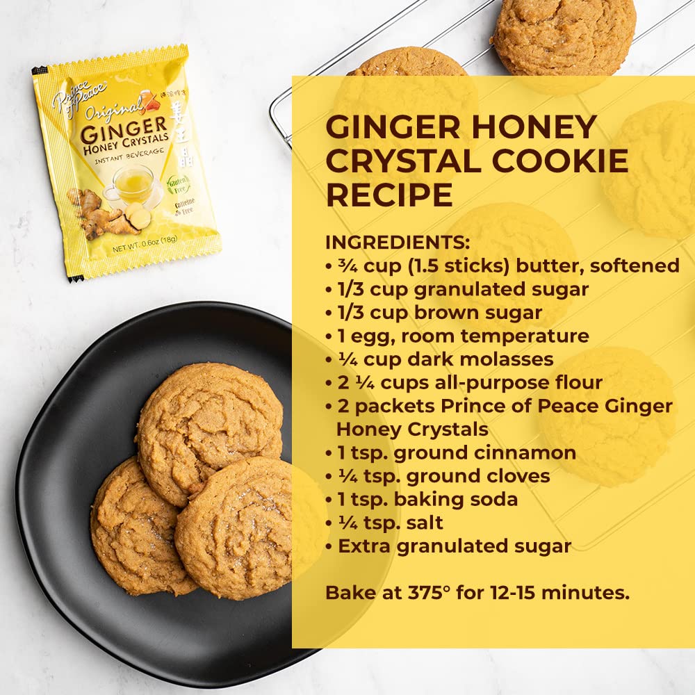 - GINGER + HONEY. Prince of Peace brings you all the natural, stomach-soothing benefits of ginger and honey in our special proprietary blend of Instant Ginger Honey Crystals. Each sachet contains concentrated extract from 14 grams of raw ginger, which is the base for the appealing aroma and exquisitely smooth taste.