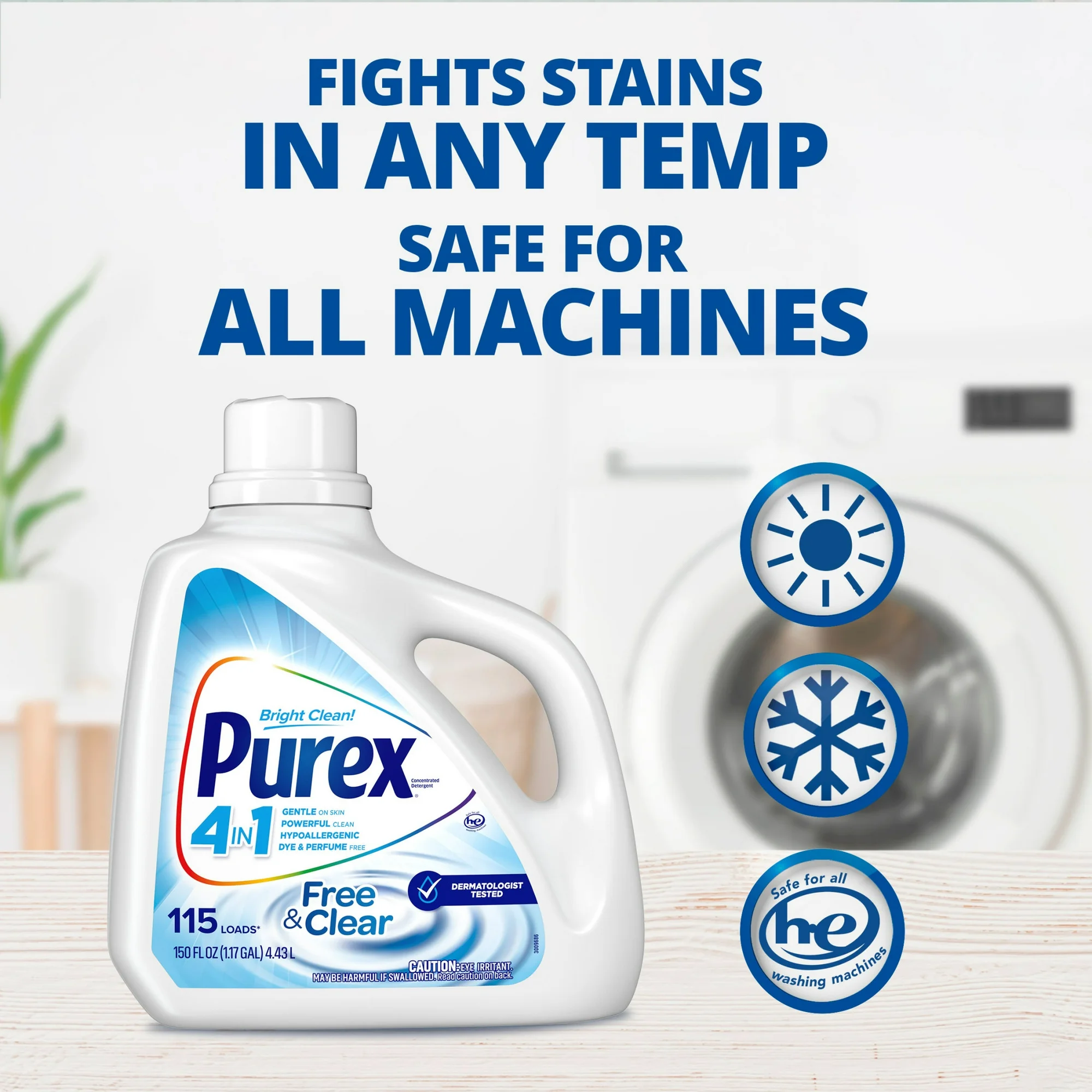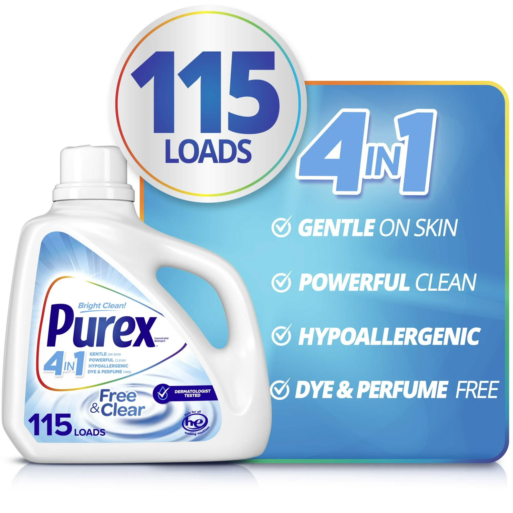 Purex Free & Clear Liquid Laundry Detergent for Sensitive Skin, 150 fl oz, 115 Loads