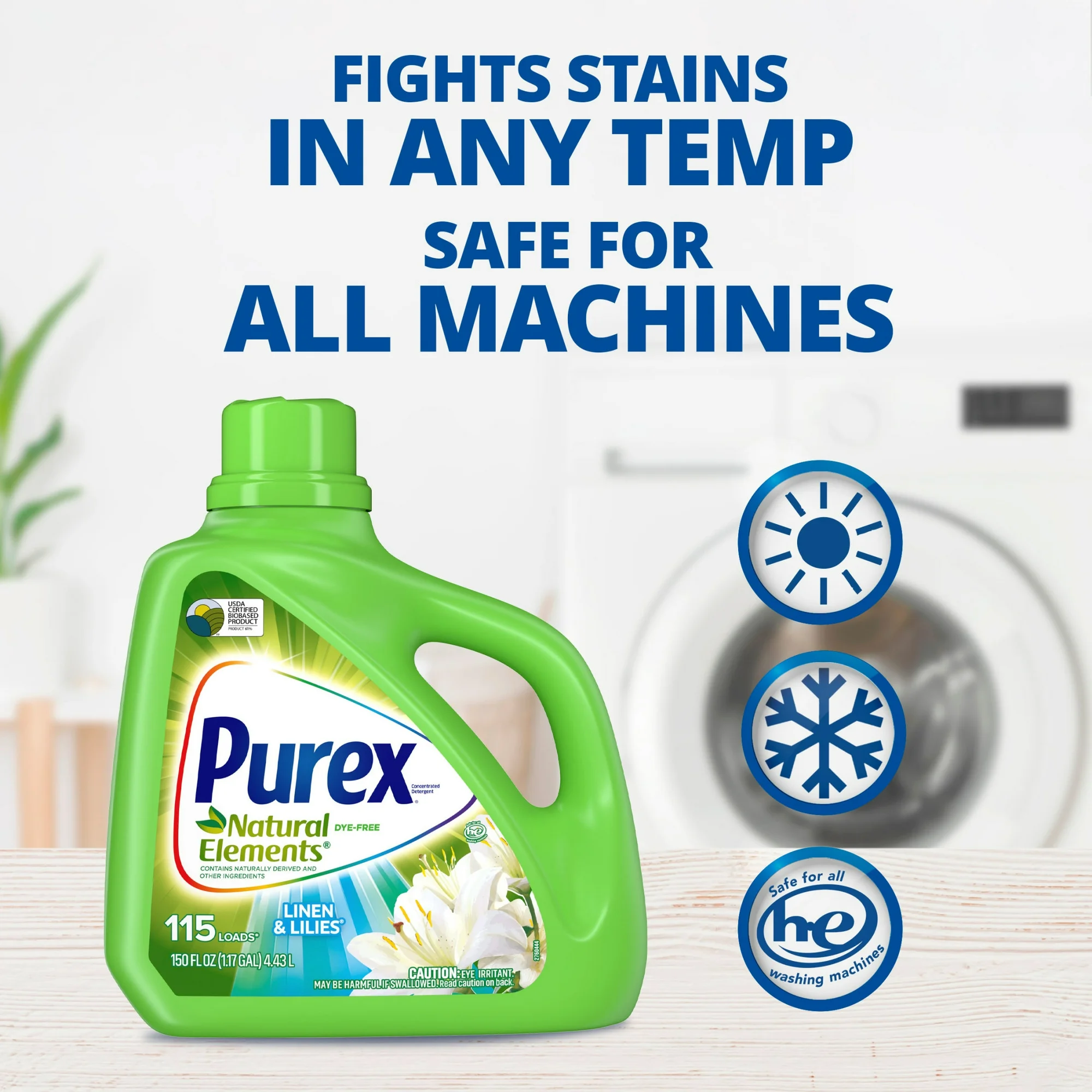 - Purex Natural Elements Linen & Lilies Liquid Detergent fights 99% of everyday stains