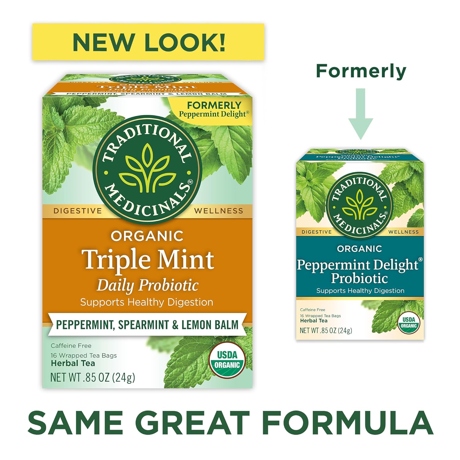 Traditional Medicinals Tea, Organic Triple Mint – Supports Healthy Digestion – Kosher, Non-GMO, Caffeine-Free – 16 Tea Bags