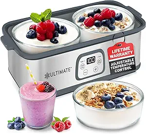 Ultimate Probiotic Yogurt Maker with Adjustable Time & Temp Control – Make Trillions of Live Probiotics with Two 1-Quart Containers for Larger Batches – Greek Yogurt Maker – ULTIMATE LIFETIME WARRANTY