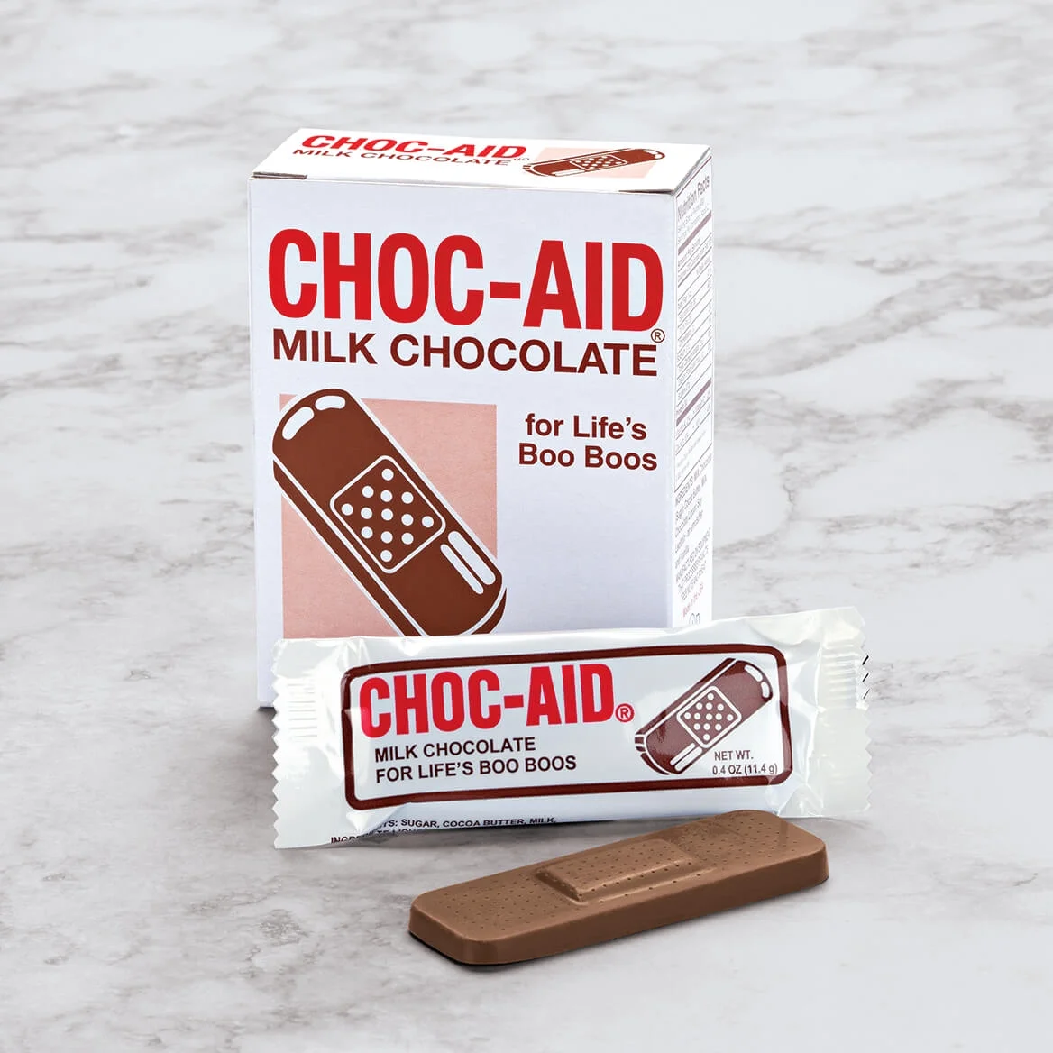 • Individually wrapped chocolates in the shape of bandages. For life’s boo boos.